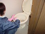 便器裏側の普段のお手入れしにくい場所もスタッフが責任もって作業します。 |